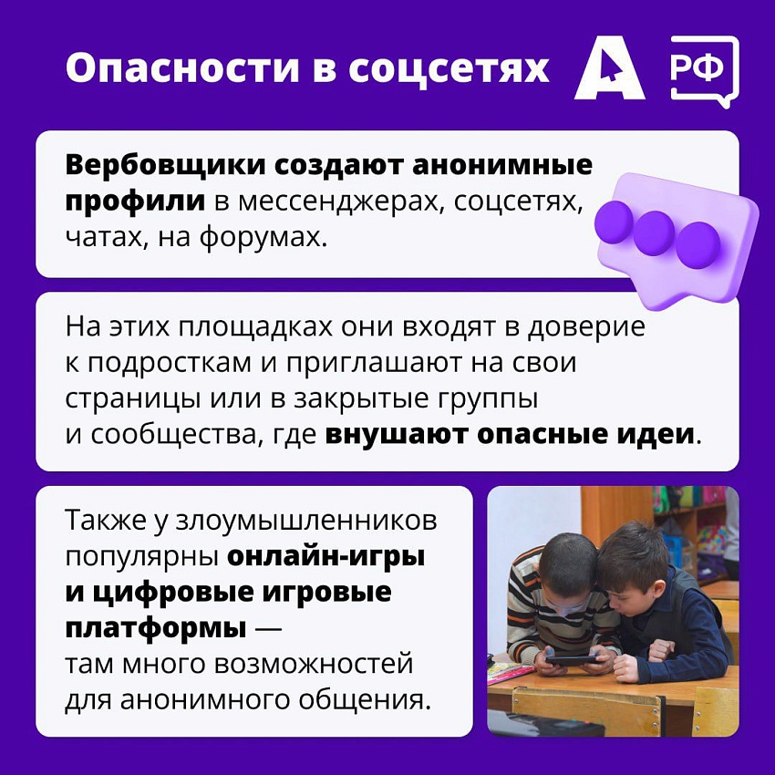 Проблема: в настоящее время представители украинских спецслужб занимаются активной вербовкой подростков для совершения ими противоправных действий на территории Российской Федерации за небольшое вознаграждение (5.000 – 30.000 рублей). Растет число поджогов объектов критически важной инфраструктуры, энергоинфраструктуры, телекоммуникаций, государственных учреждений и ведомств, транспорта.