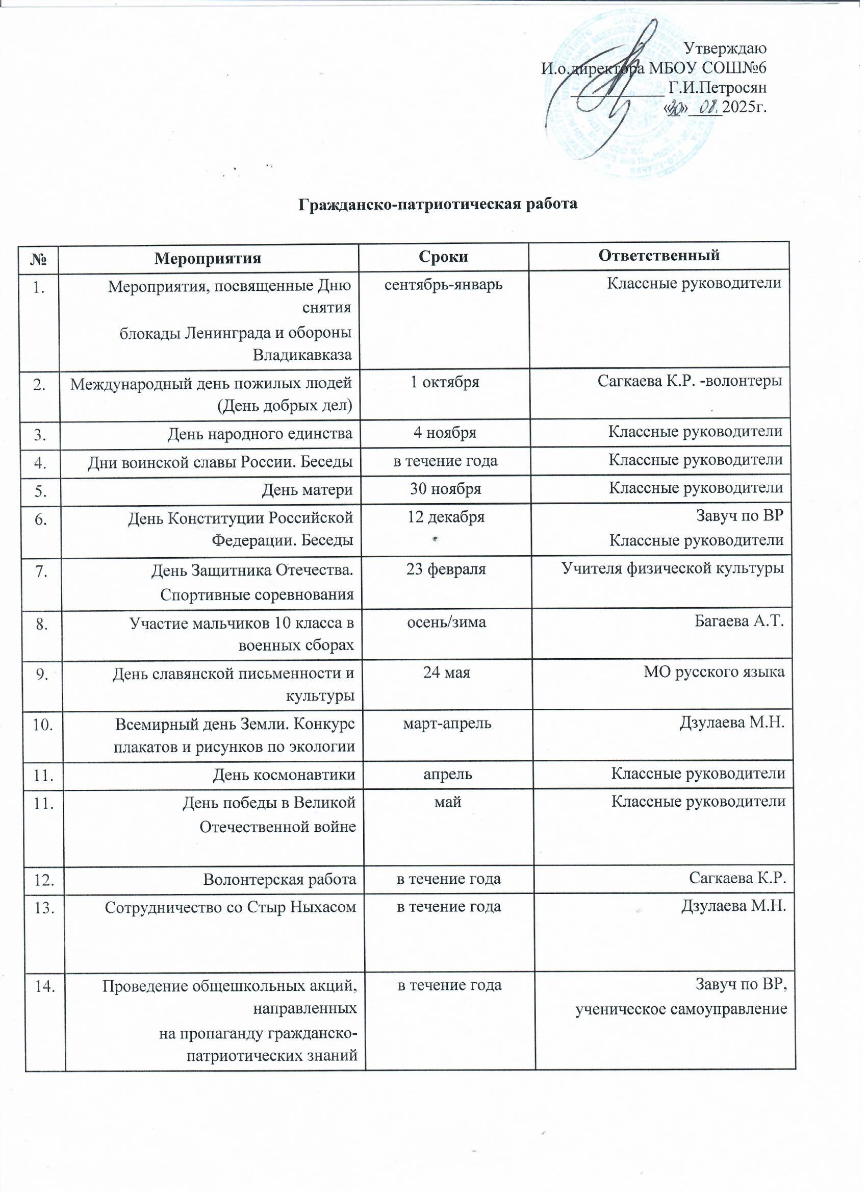 В соответствии с многообразием поставленных задач, которые решает система патриотического воспитания детей и подростков, она включает в себя следующие разделы, для удобства проведения комплексной работы в единстве еѐ всех составных частей и учѐтом возрастных особенностей школьников: