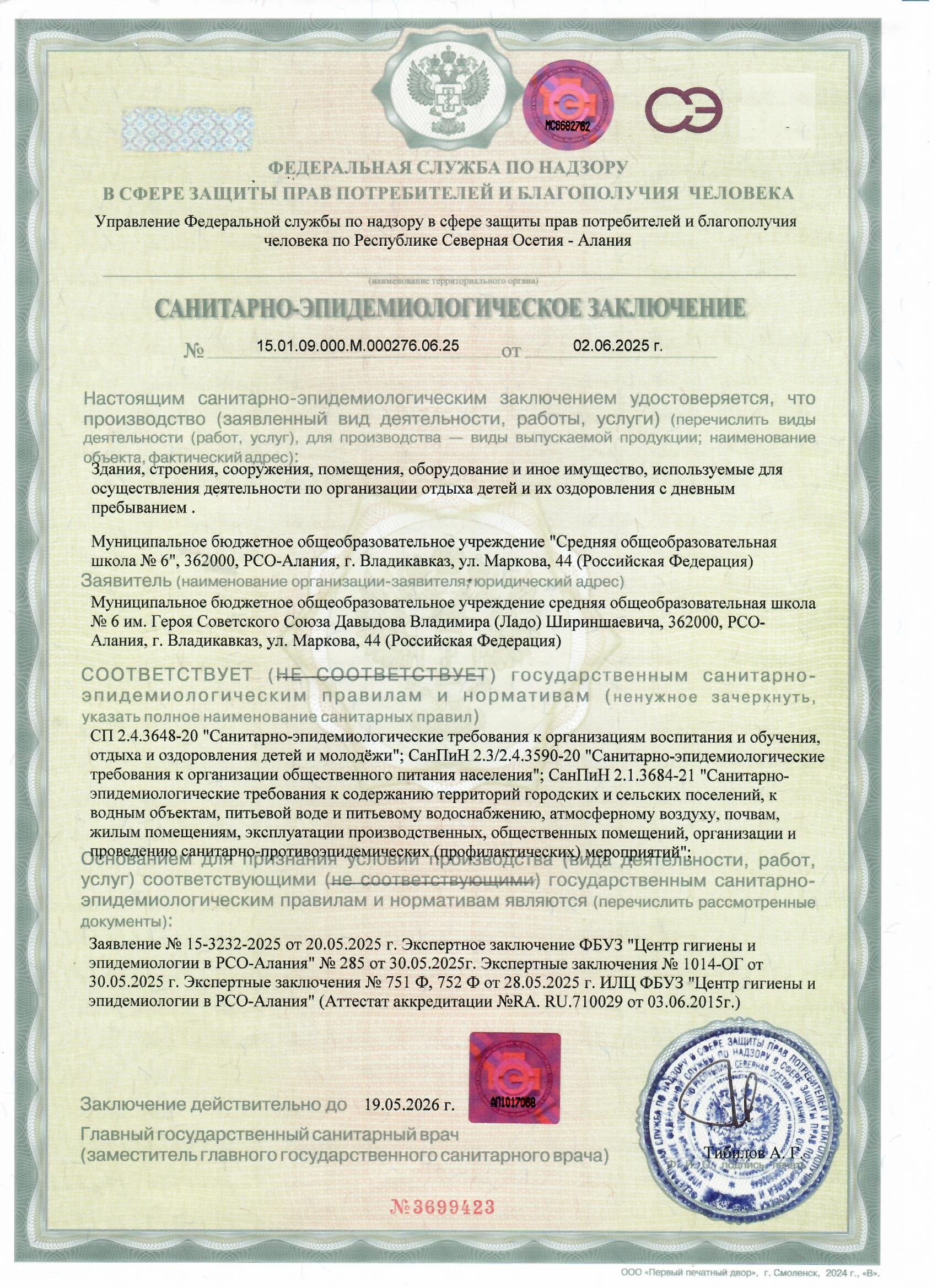 Санитарно-эпидемиологическое заключение на осуществление образовательной деятельности